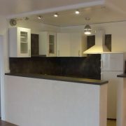 L’appartement comprend une grande pièce de vie faisant office de Salon et cuisine américaine séparés par un comptoir type bar, une chambre, une Sdb et un toilette séparé.
